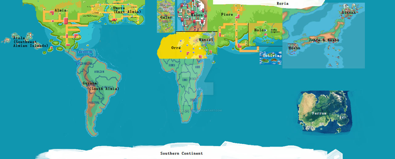 Probably the most accurate Pokémon World Map featuring pretty much